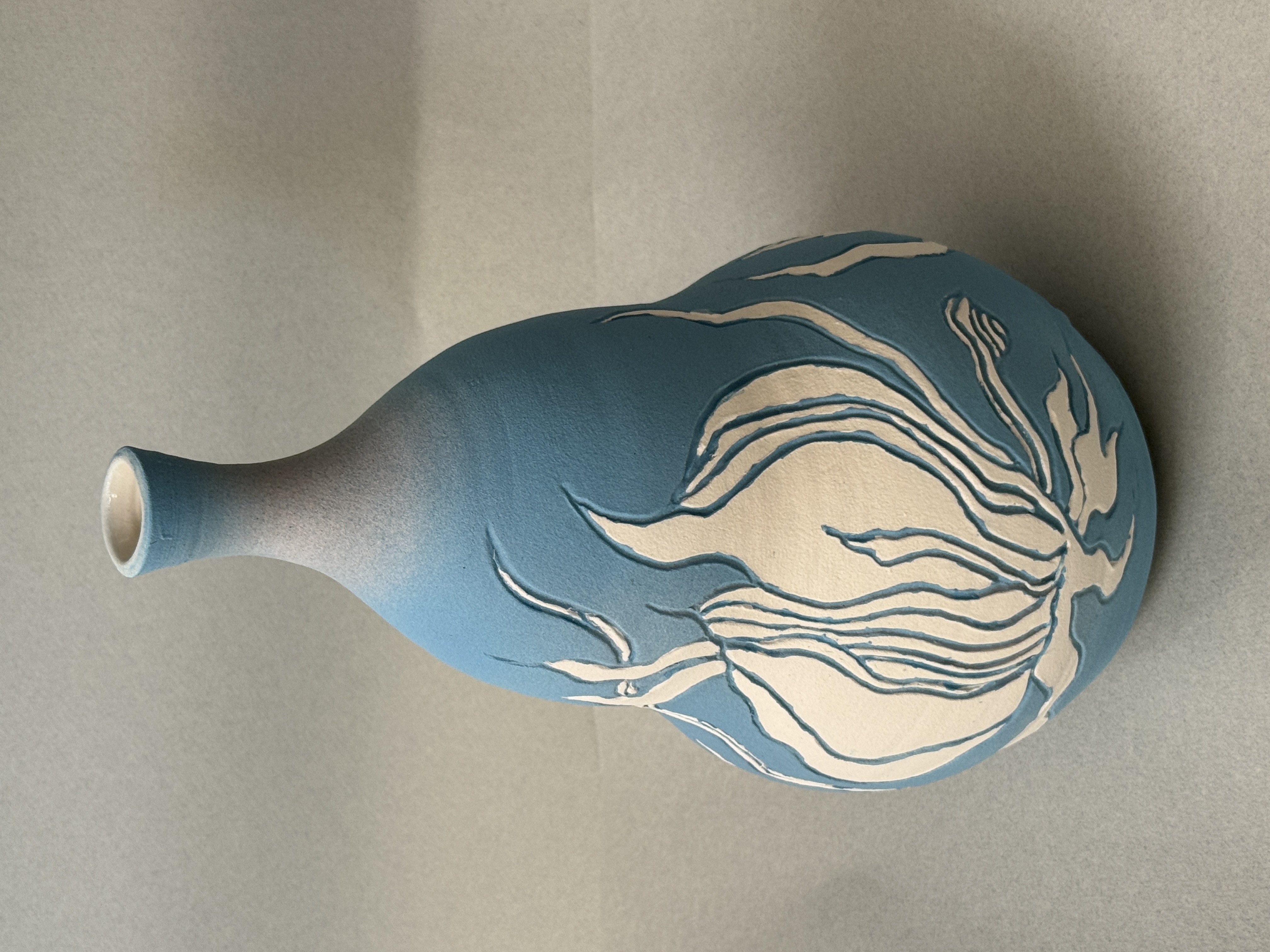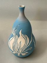 Carved Blue Daisy Vase