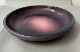 Large shallow carved pink stoneware bowl