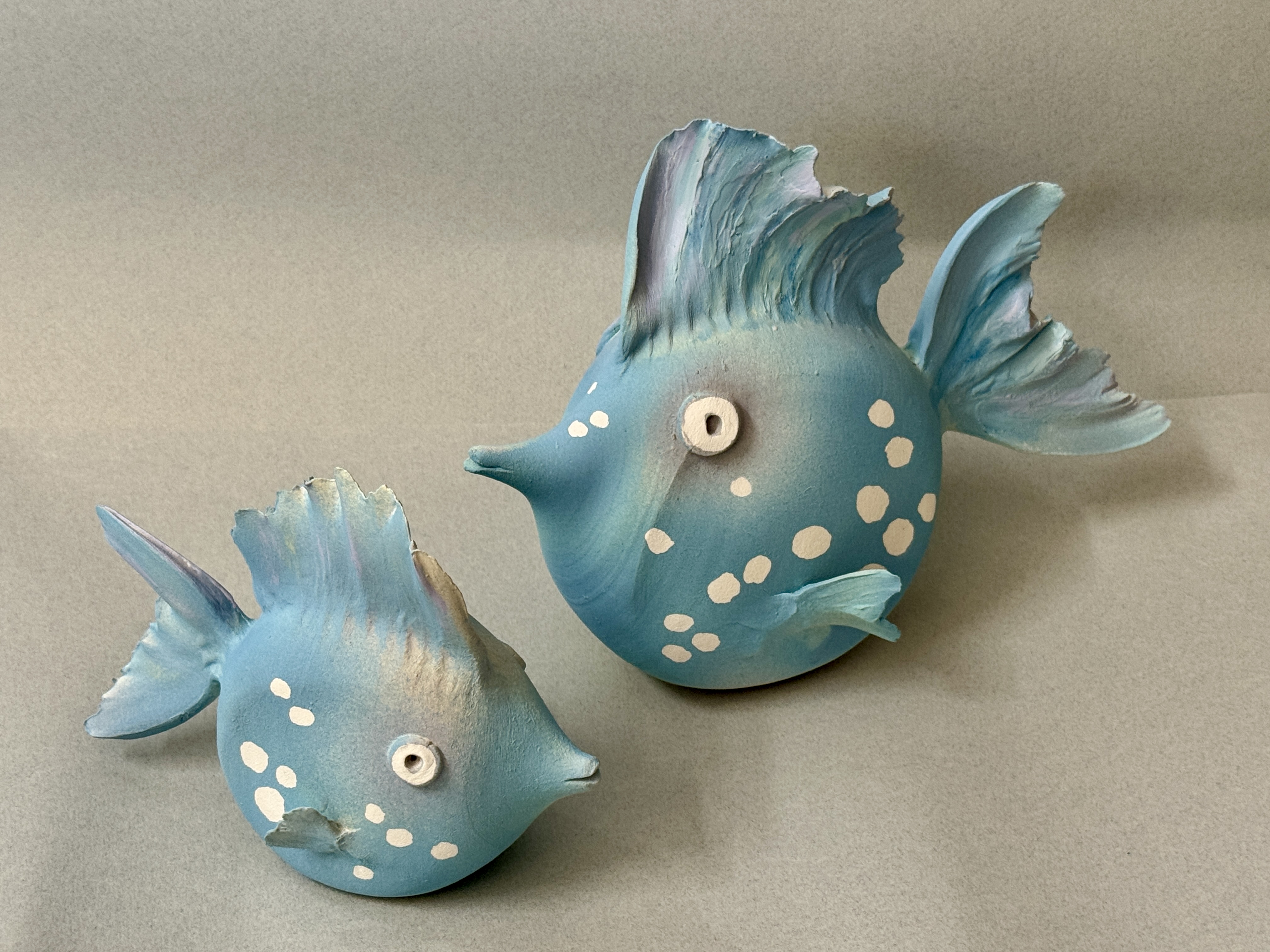 Pair of dry glazed white stoneware fish